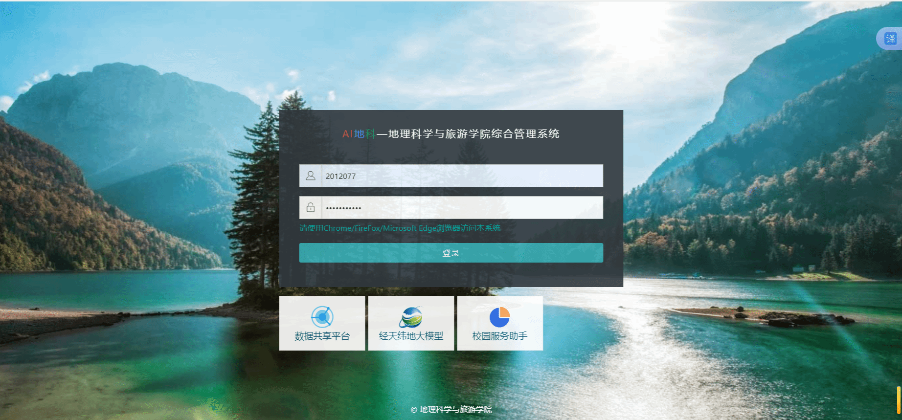 “AI地科—新葡的京集团35222vip综合管理系统”登录界面