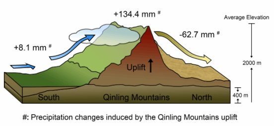 图2--秦岭山脉高程对中国中部降水影响示意图