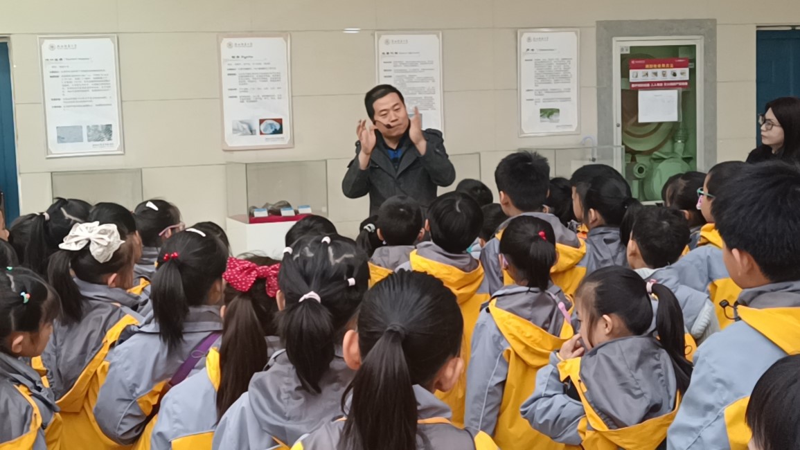 为了贯彻“弘扬科学精神,普及科学知识,传播科学思想和科学方法,提高全民科学素质”精神,配合学校科协“科技之春”活动月,2021年3月9日上午,新葡的京官网实验中心接待了师大附小师生一行。师大附小大队辅导员陈倩、科技组组长田阳阳等7名老师带领附小一年级3个班126名学生到新葡的京官网实验中心参观矿物矿石标本及导游模拟实验室。