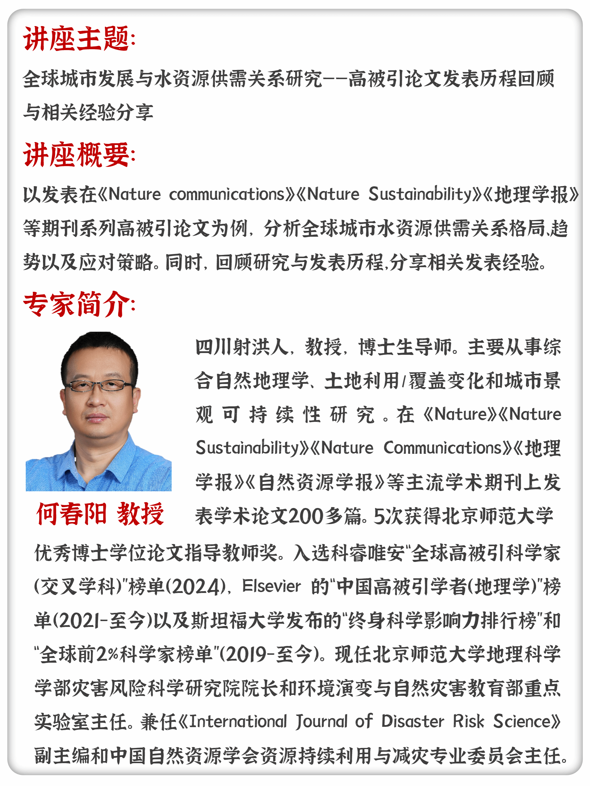 本次专题论坛受到广大中青年学者和研究生的高度关注,论坛将邀请自然资源领域内具有重要学术影响力的专家学者,分享他们在高水平科研项目设计、期刊论文写作、科技奖励申报、科技咨询服务等方面的宝贵经验和心得。论坛聚焦从科研选题到论文发表再到科技咨询的完整链条,探讨学术论文写作技巧、学术研究创新与学术价值提升路径,并通过案例剖析和专题融合讲解,为科研人员呈现多学科、多领域、多方法的交叉视角。应邀专家还将结合征集的论文案例详细阐述如何精准挖掘选题、合理谋篇布局、构建科研学术思维,并针对投稿、审稿、修稿环节的关键问题提供专业建议,为有志于在国内外高水平期刊上发表研究成果的学者提供实用指导。