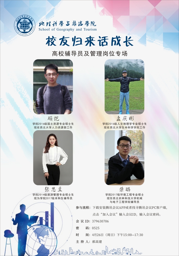 1、顾恺,学院2016级国土资源专业硕士生,现在西北大学人力资源部工作。